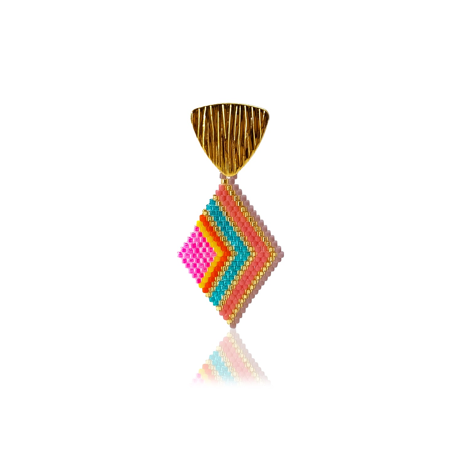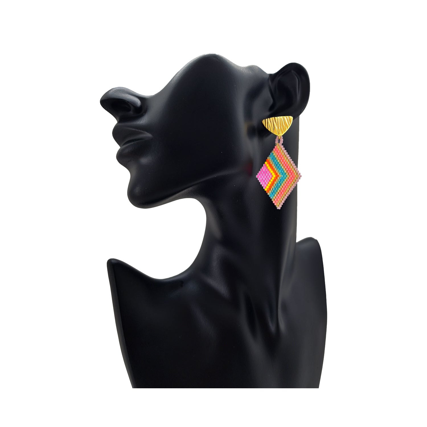 Paire de boucles d'oreilles uniques tissées à la main avec base plaquée or.