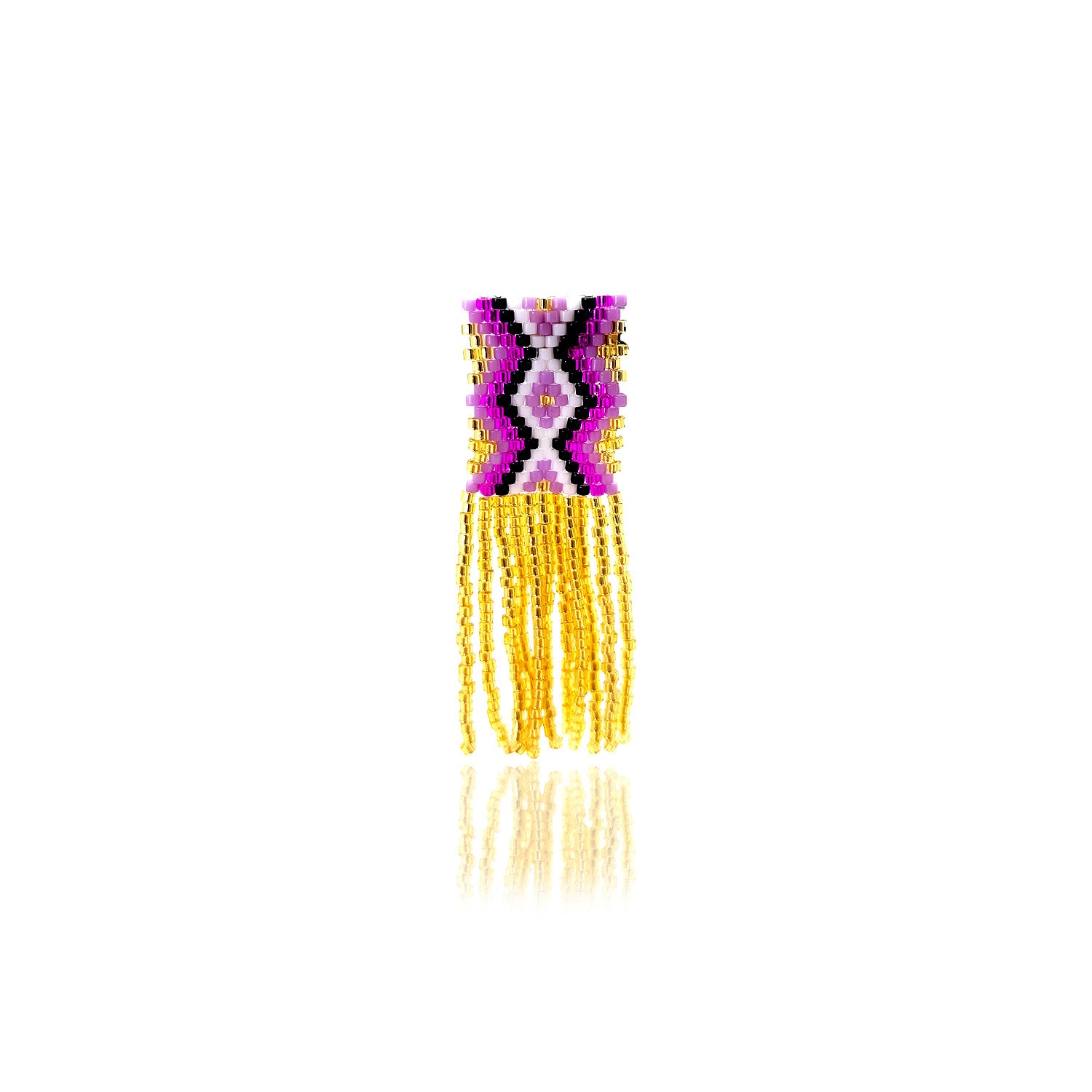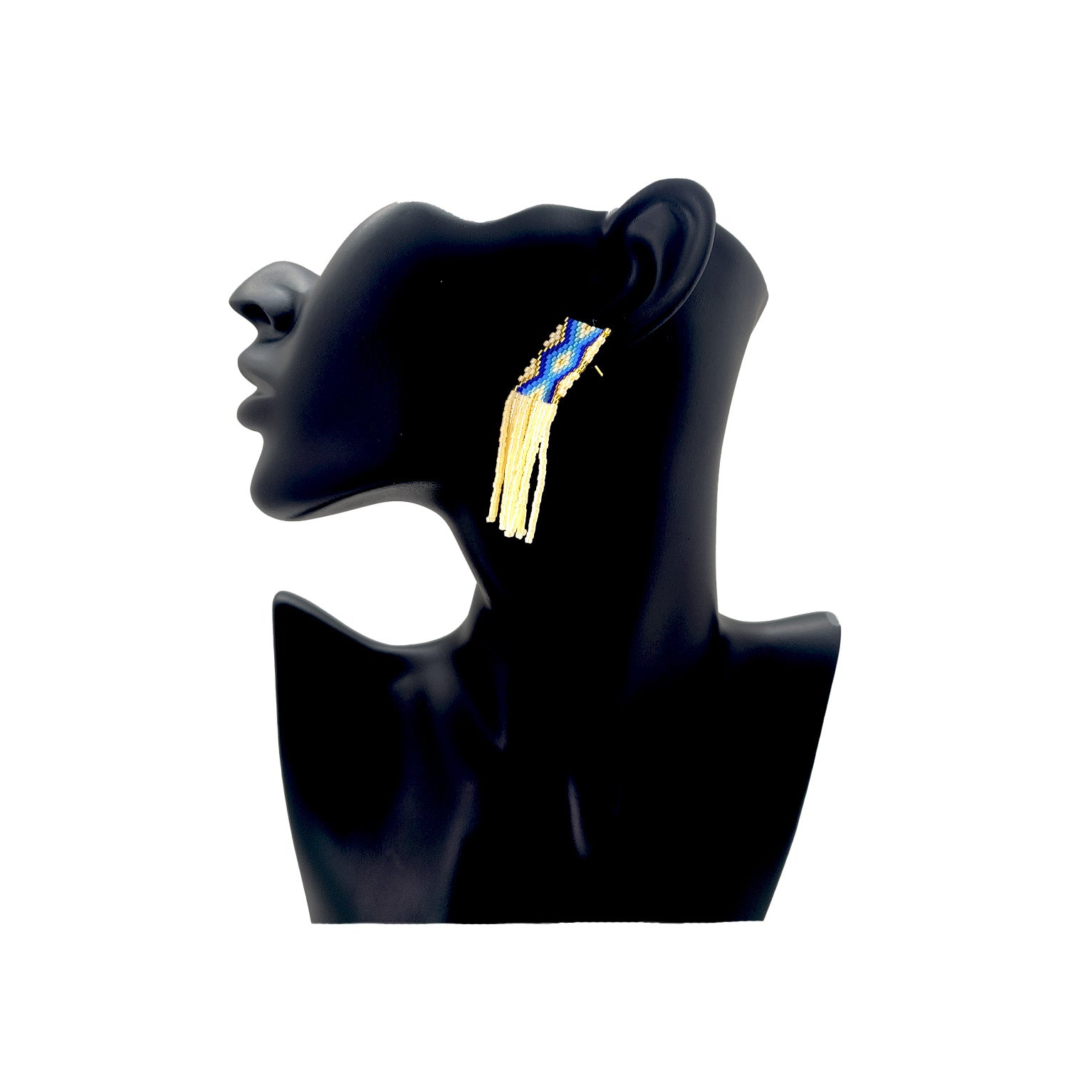 Paire de boucles d'oreilles uniques tissées à la main avec base plaquée or.