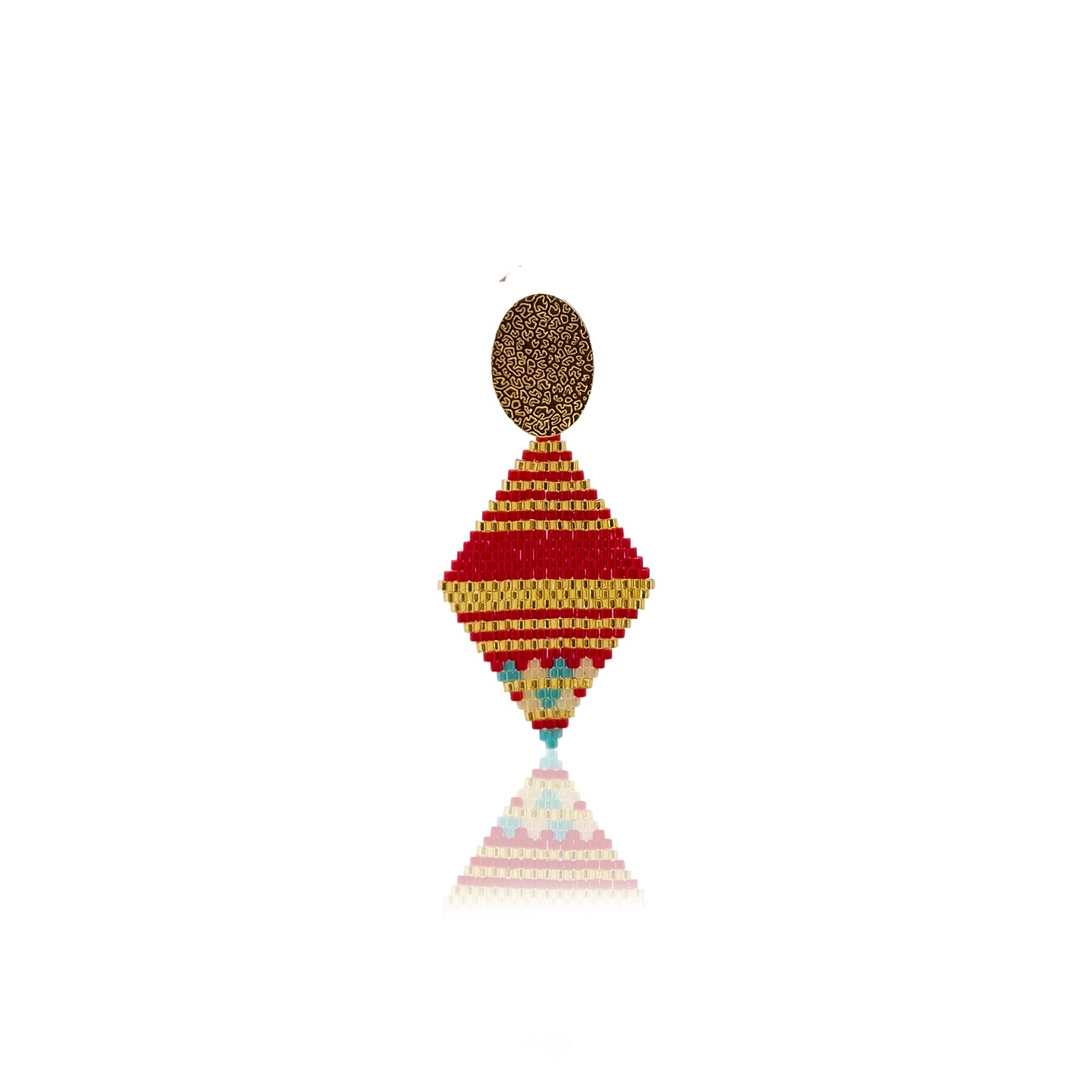 Paire de boucles d'oreilles uniques tissées à la main avec base plaquée or.