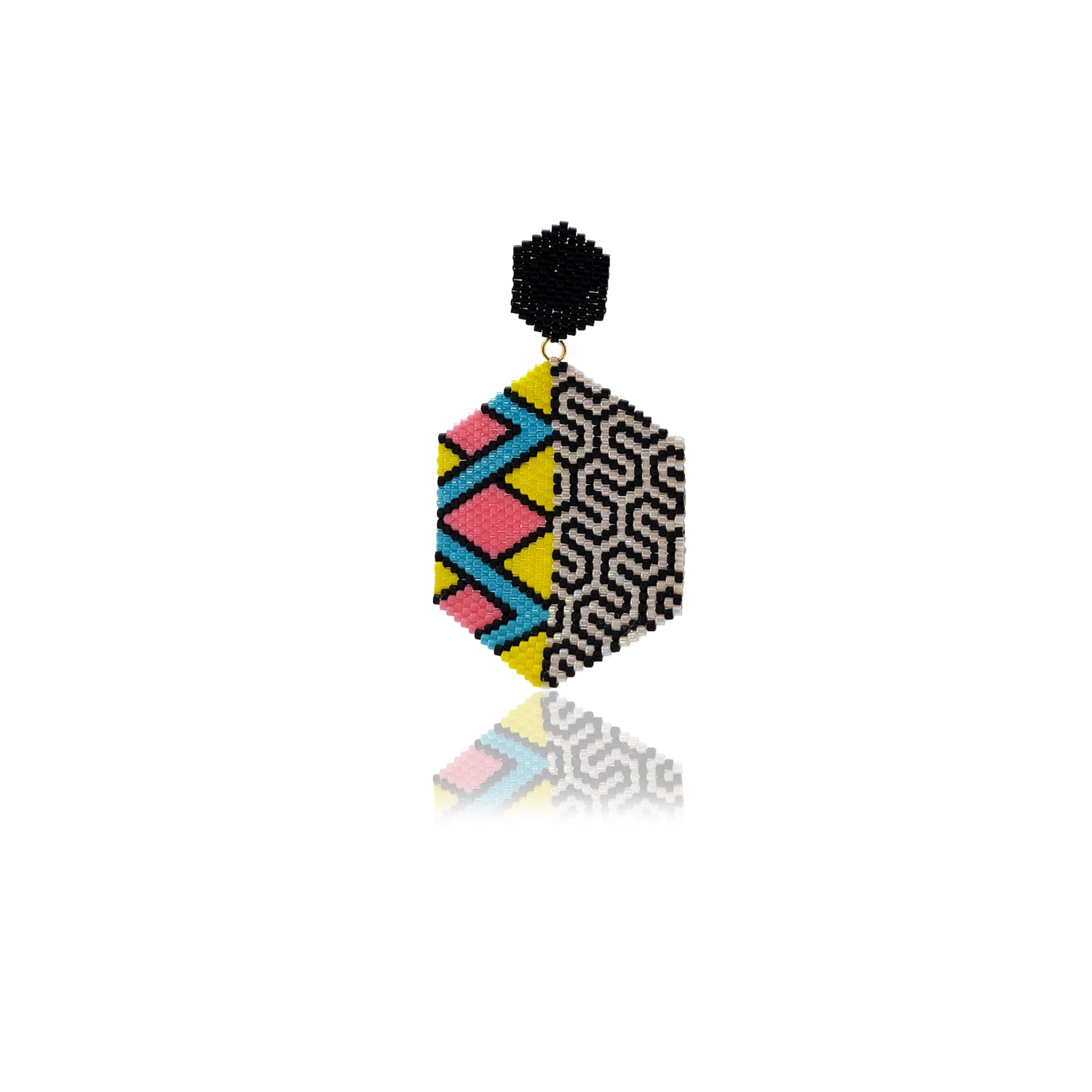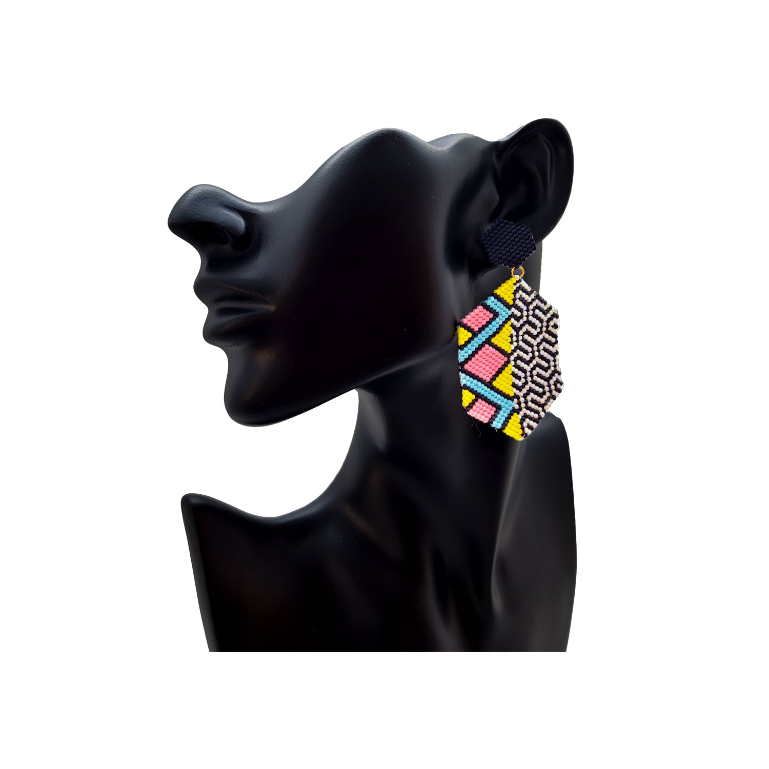 Paire de boucles d'oreilles uniques tissées à la main avec base plaquée or.