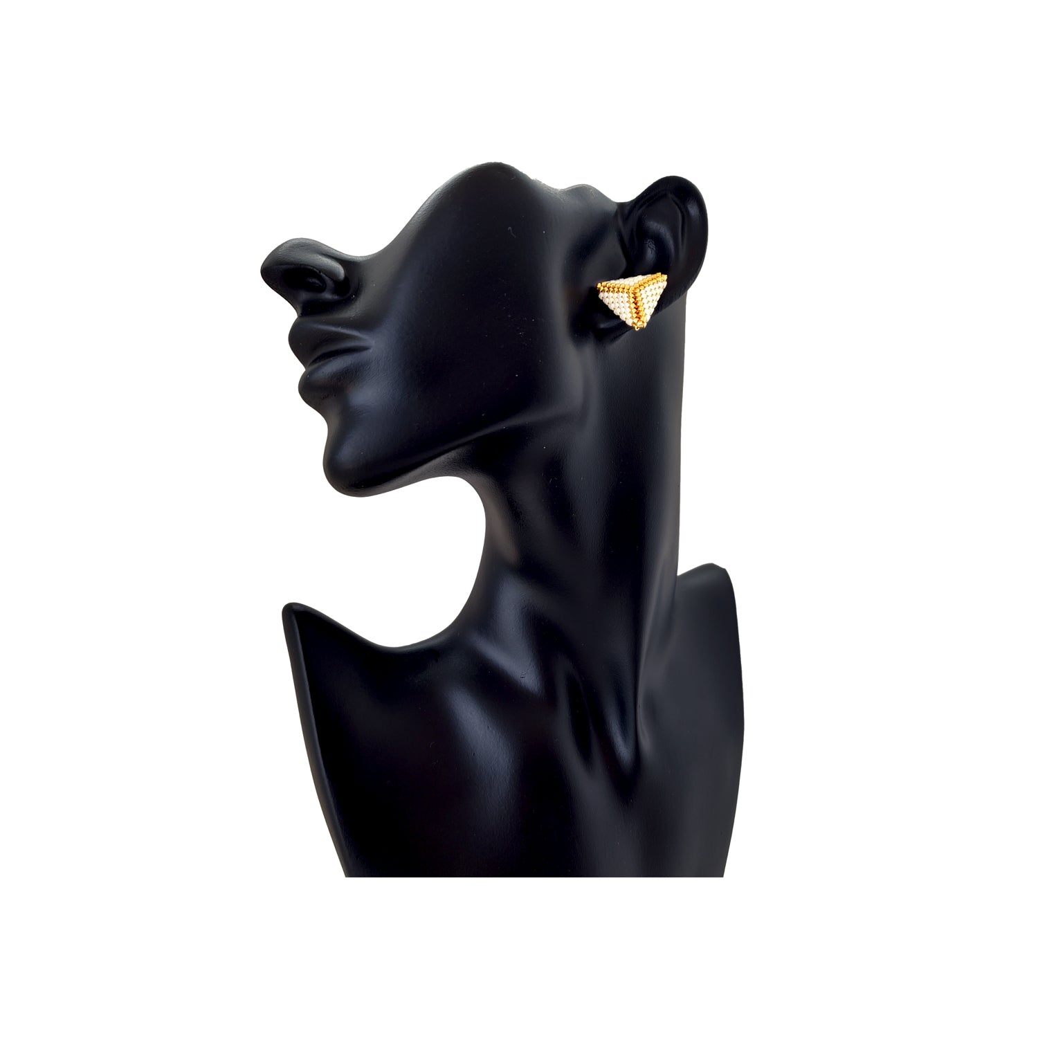 Paire de boucles d'oreilles uniques tissées à la main avec base plaquée or.