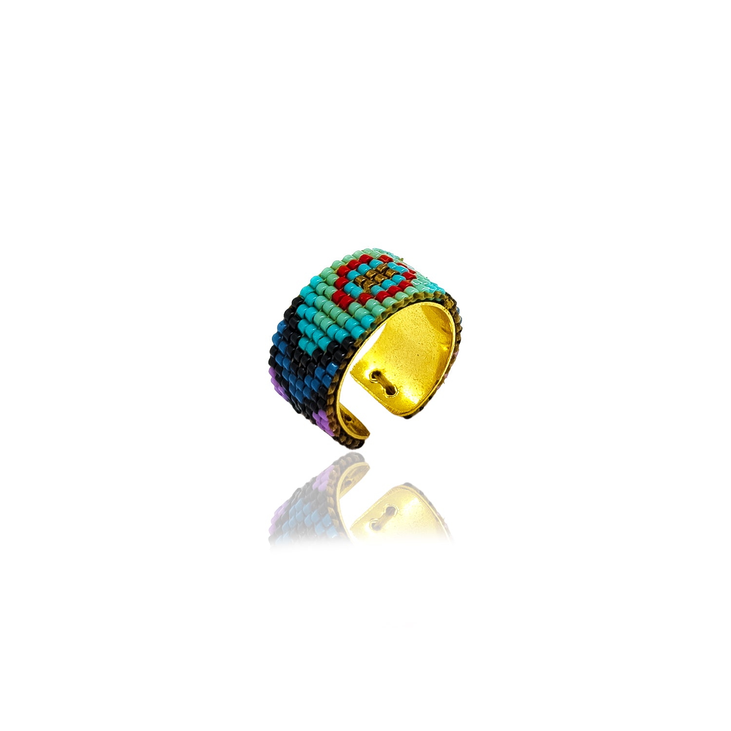 Bague réglable plaquée or combinée à des perles Miyuki tissées à la main.