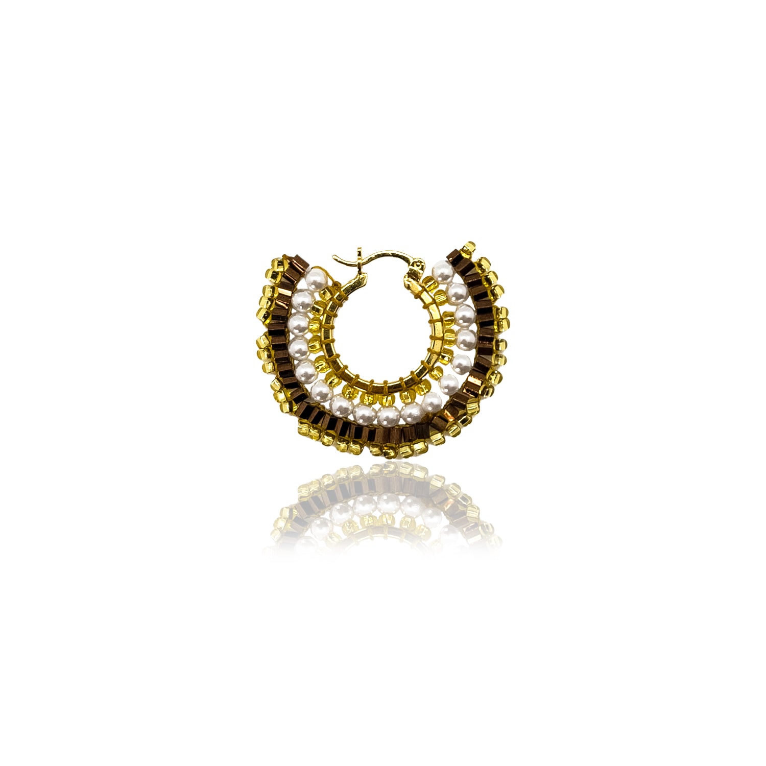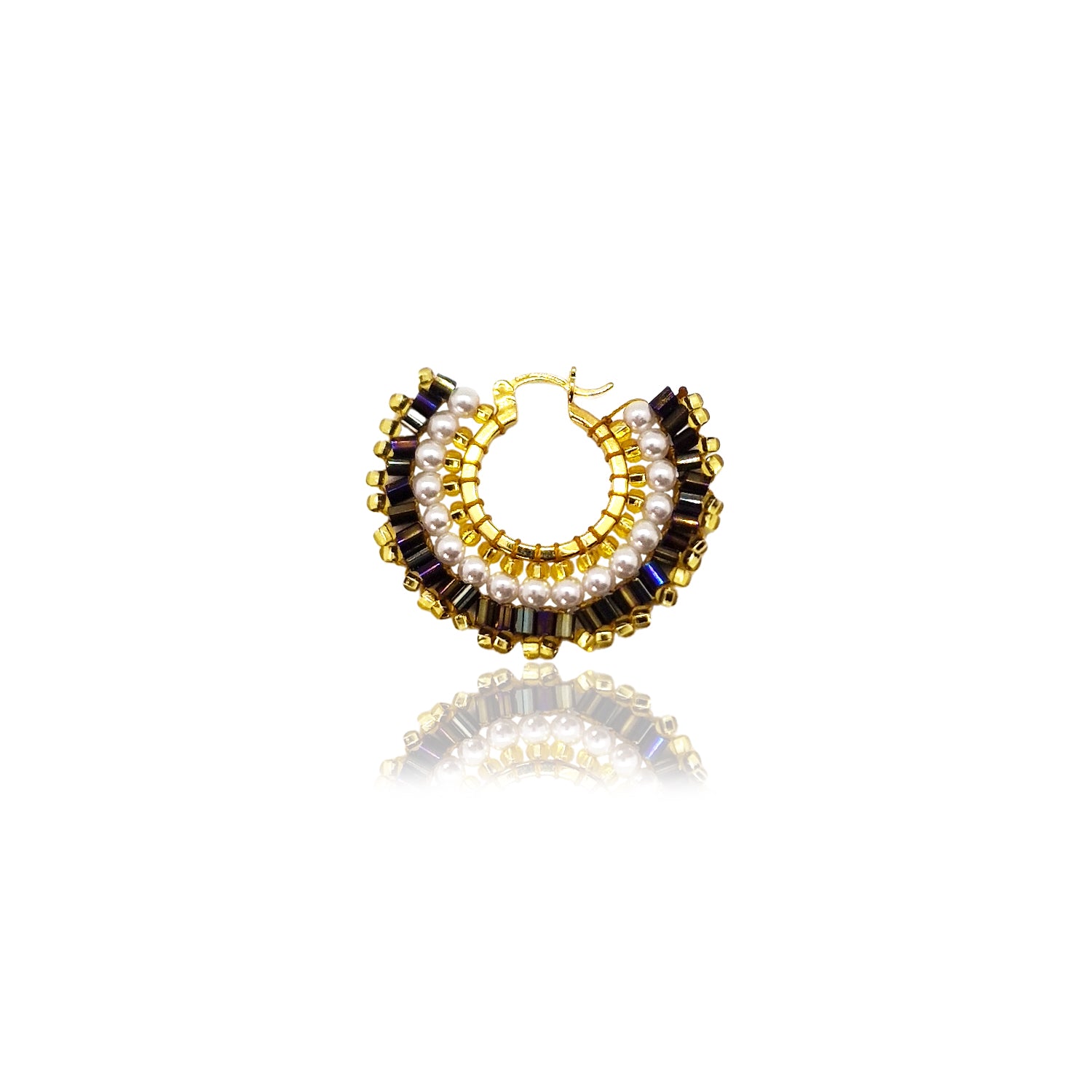 Paire de boucles d'oreilles uniques tissées à la main avec base plaquée or.